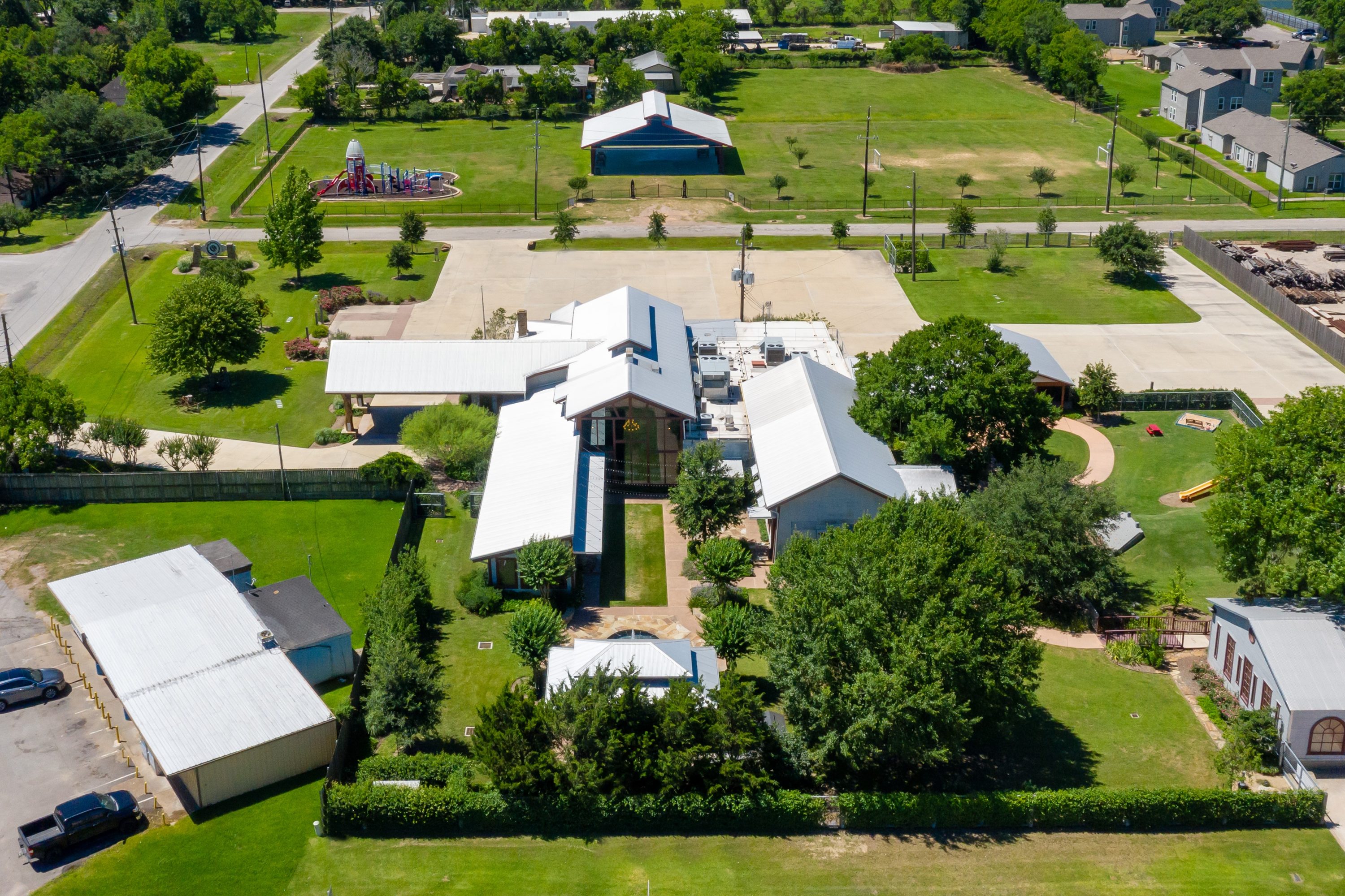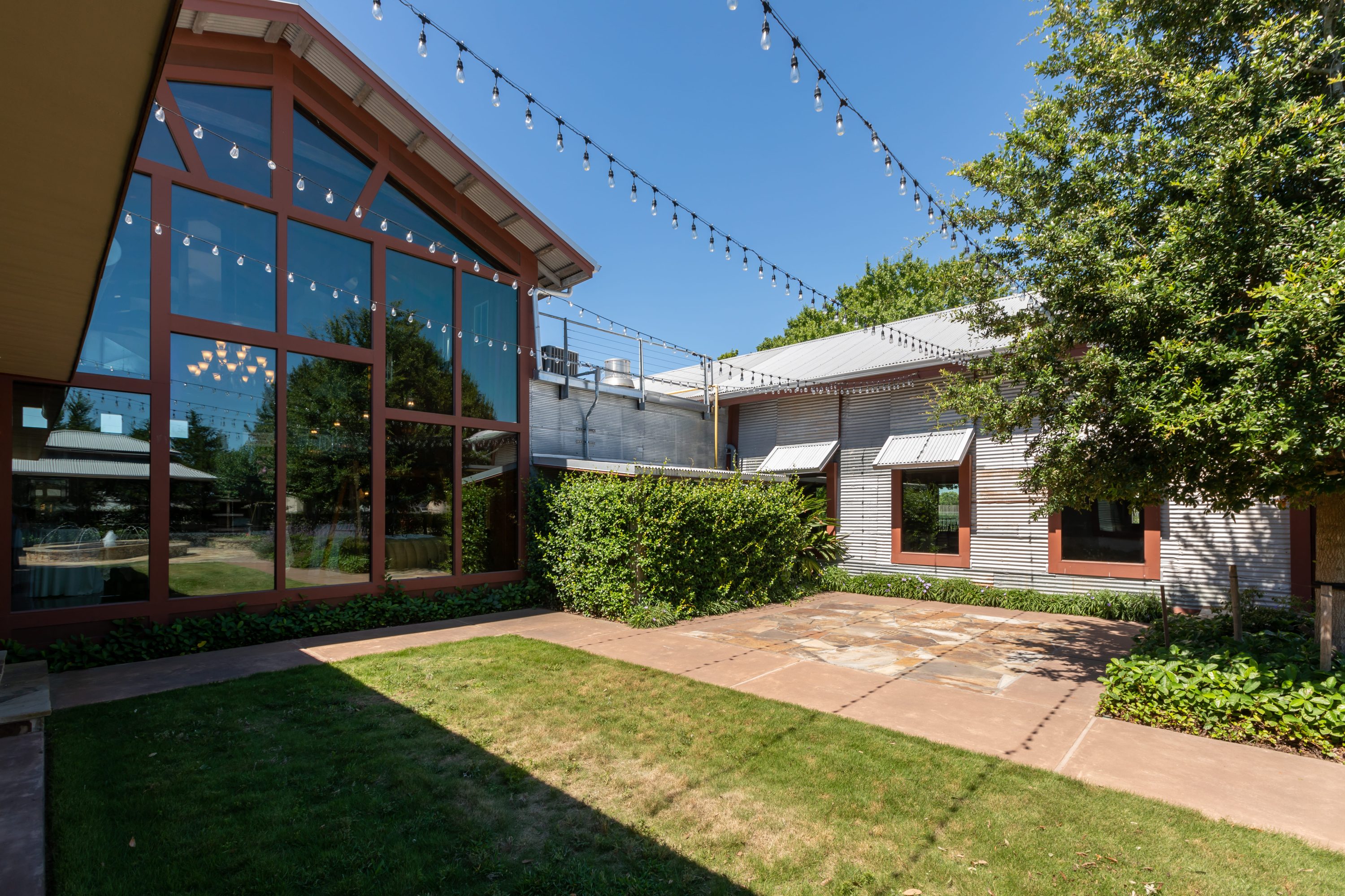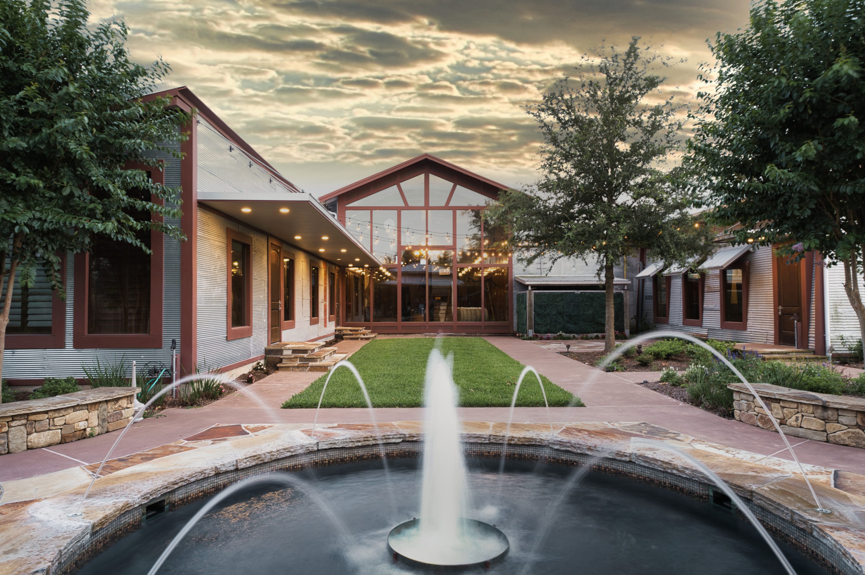Explore our beautifully landscaped grounds with unique features that include a natural wood entranceway, bubbling fountain, and a grand oak tree. With all of the natural light, these are some of our favorite settings to achieve stunning photography. And we have plenty of space to host a company party or event that can include activities or games to help boost employee morale.