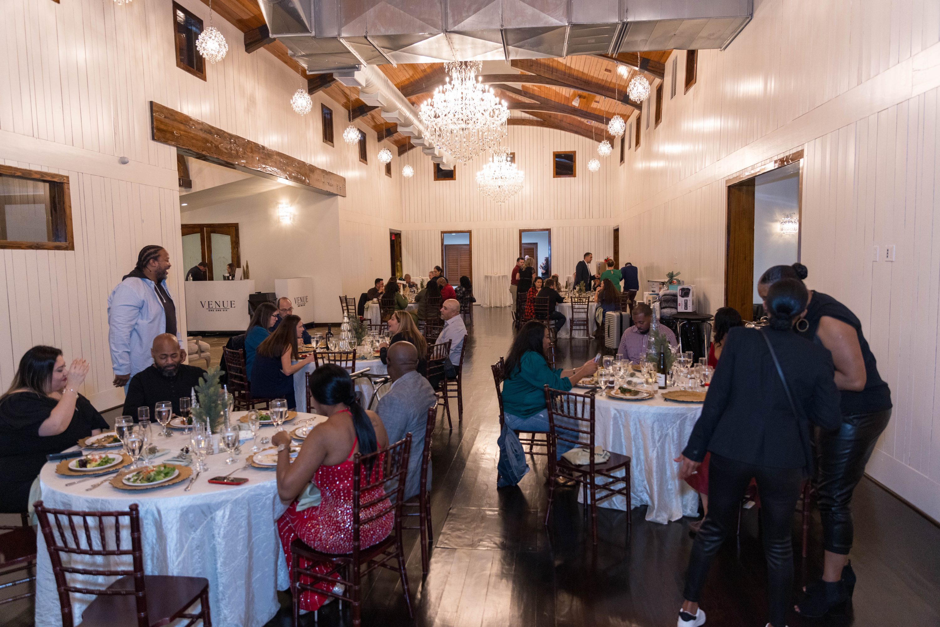 The halls were decked, the lights were strung up, and Venue 116 was bright with holiday cheer. The Christmas Party brought everyone together for a magical night that was shared with the company and beloved friends. Our venue is the perfect spot for hosting your company Christmas Party or any holiday event. We'll help plan everything, from the food to the entertainment and/or games. No matter the occasion, getting your team together to show your appreciation for all their hard work is an important aspect of building a successful company.